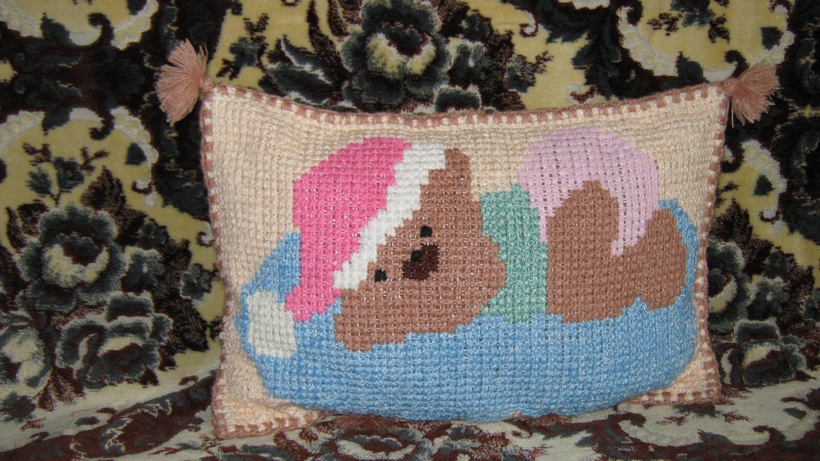 amiben mutattam egy keresztszemes kézimunkát?Azt párnának akartam megvarrni ami most elkészült.A nevelőapukám varrta a szegélyét és ő varrta össze a párnát magát,ő tömte ki és ő varrta össze varrógéppel a külső huzatot is.Tehát a munka oroszlán része az övé volt,az enyém csak a keresztszemes kivarrása,kitöltése.