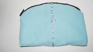 Ezt a kék kozmetikai táskát ajándékba készitettem.Háromszor bontottam visza mire elérte a végleges formáját.Ez volt az első kozmetikai táska amit készitettem.Kézzel varrtam.17 cm széles és 12 cm mély.Tehát minden bele fér amire szükség lehet a smink elkészitéséhez és megigazitásához ha mész valahova.